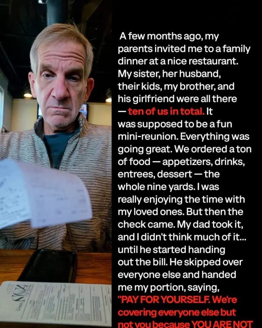 “But…” I started, my voice small, “I thought this was a family dinner. You’re paying for everyone else.”