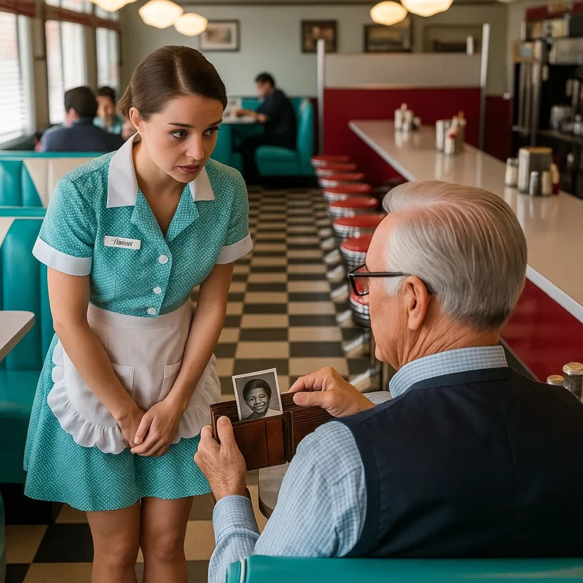 The diner seemed to fade around her—the clinking cutlery, the chatter, even the smell of fresh pie. All she could focus on was the man’s calm, deliberate tone, and the weight of the photo between them.
