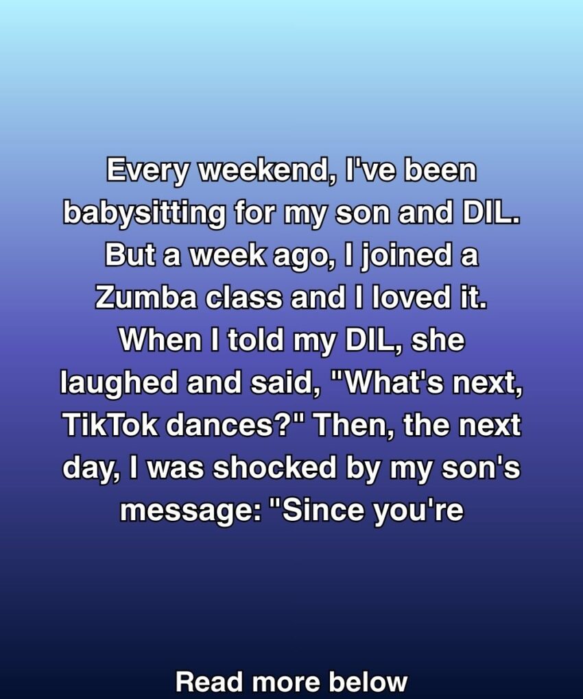When I told my DIL, she laughed and said, “What’s next, TikTok dances?” Then, the next day, I was shocked by my son’s message: “Since you’re clearly too busy now, we’ll figure something else out for the kids.”