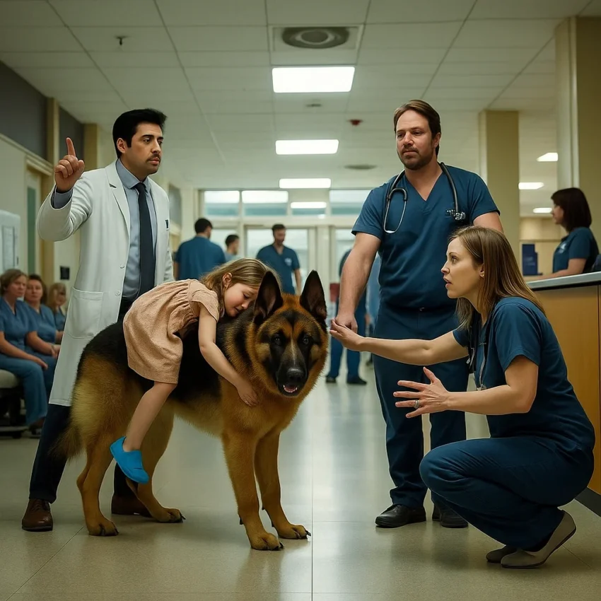 Chairs scraped. Doors flung open. Doctors emerged from side corridors. One woman, an ER nurse named Karen, dropped to her knees beside the shepherd and reached gently for the girl. The dog didn’t budge—but his eyes followed her every motion.