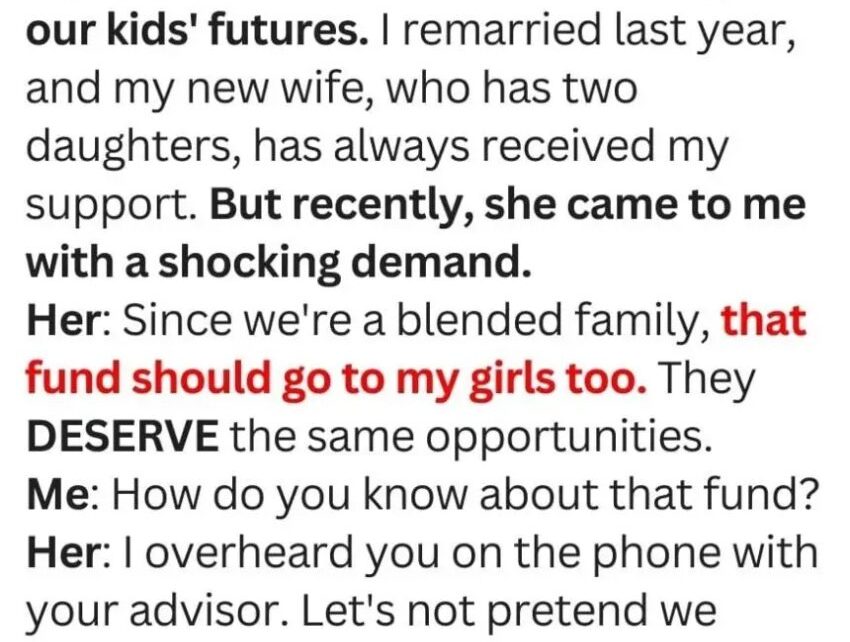 “That money is for Edith’s daughters. It’s her legacy.”Gaby frowned. “We’re one family now. My girls deserve the same opportunities.”I stayed calm but firm. “We’ll create a fund for your daughters too, but it has to come from our joint income. Edith’s savings are not to be touched.”The next day, I made a loud call to my financial advisor so Gaby could hear:“