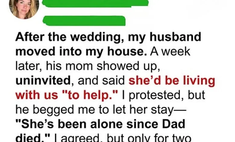 After the wedding, my husband moved into my house. A week later, his mom showed up, uninvited, and said she’d be living with us “to help.” I protested, but he begged me to let her stay—“She’s been alone since Dad died.” I agreed, but only for two months. But just a week later, I went into the kitchen, served myself some soup I had made, and my MIL stormed in.