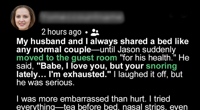 When Maya’s husband insists on sleeping in the guest room because of her snoring, she thinks nothing of it… until a late-night message shatters everything. What she discovers isn’t an affair, but something even more devastating. A story of betrayal, illusion, and the quiet power of choosing yourself.
