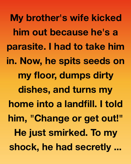 My brother’s wife kicked him out because he’s a parasite. I had to take him in. Now, he spits seeds on my floor, dumps dirty dishes, and turns my home into a landfill. I told him, “Change or get out!” He just smirked. To my shock, he had secretly forwarded his mail to my address.