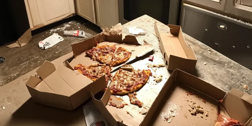 And that’s when I saw it: the mess. I mean, the place looked like a tornado had swept through it. Dirty dishes piled up, crusted old food, trash spilling out of the bin, and a smell that made me wince. My heart sank.
