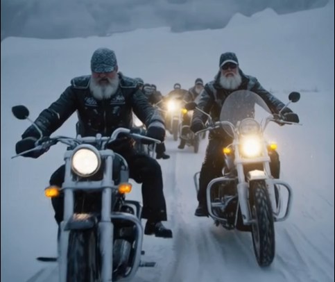 Behind him, 36 riders nodded. No one spoke. Snow piled on their shoulders, their Harleys ticking as they cooled.