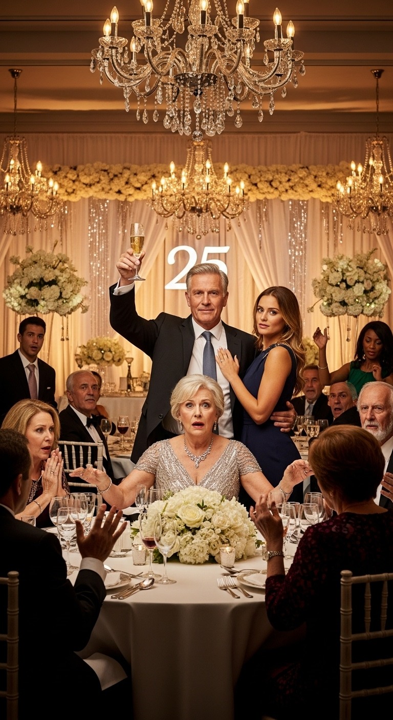 The room went dead silent. The band stopped mid-note. Champagne froze halfway to lips. That’s how my twenty-fifth wedding anniversary began: with a public divorce announcement in a ballroom full of our friends, family, and his colleagues.