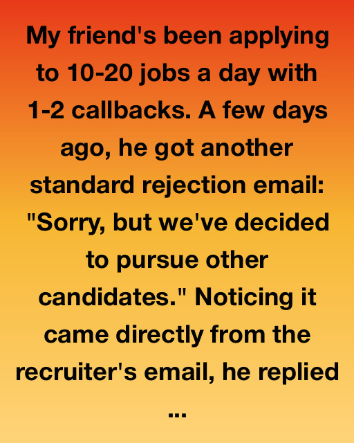 My friend’s been applying to 10-20 jobs a day with 1-2 callbacks. A few days ago, he got another standard rejection email: “Sorry, but we’ve decided to pursue other candidates.” Noticing it came directly from the recruiter’s email, he replied.