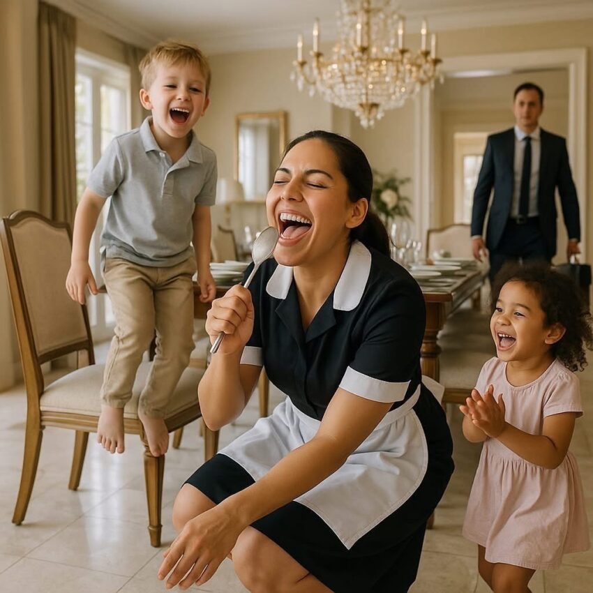 That simple scene — a woman in a housekeeper’s uniform playing with his children —