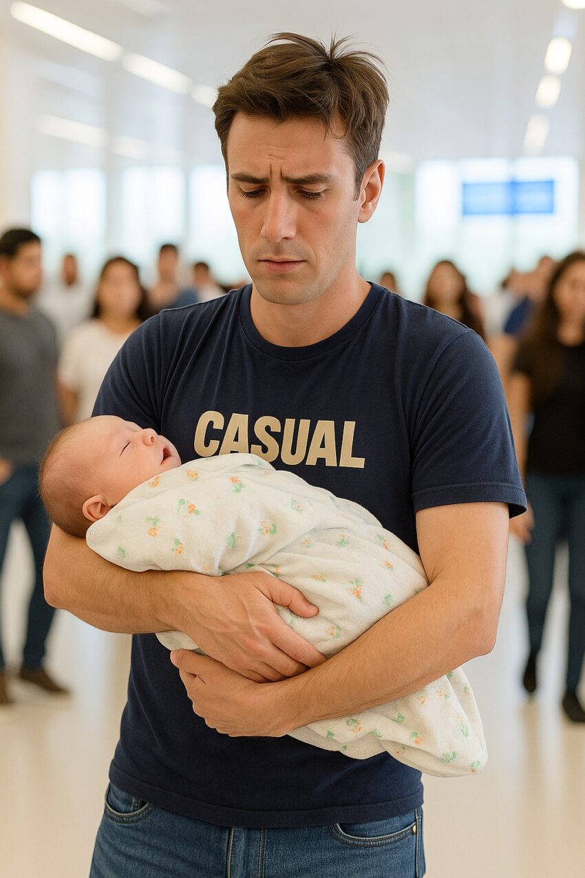 David stood at the airport check-in counter, his newborn daughter, Lily, cradled in his arms.