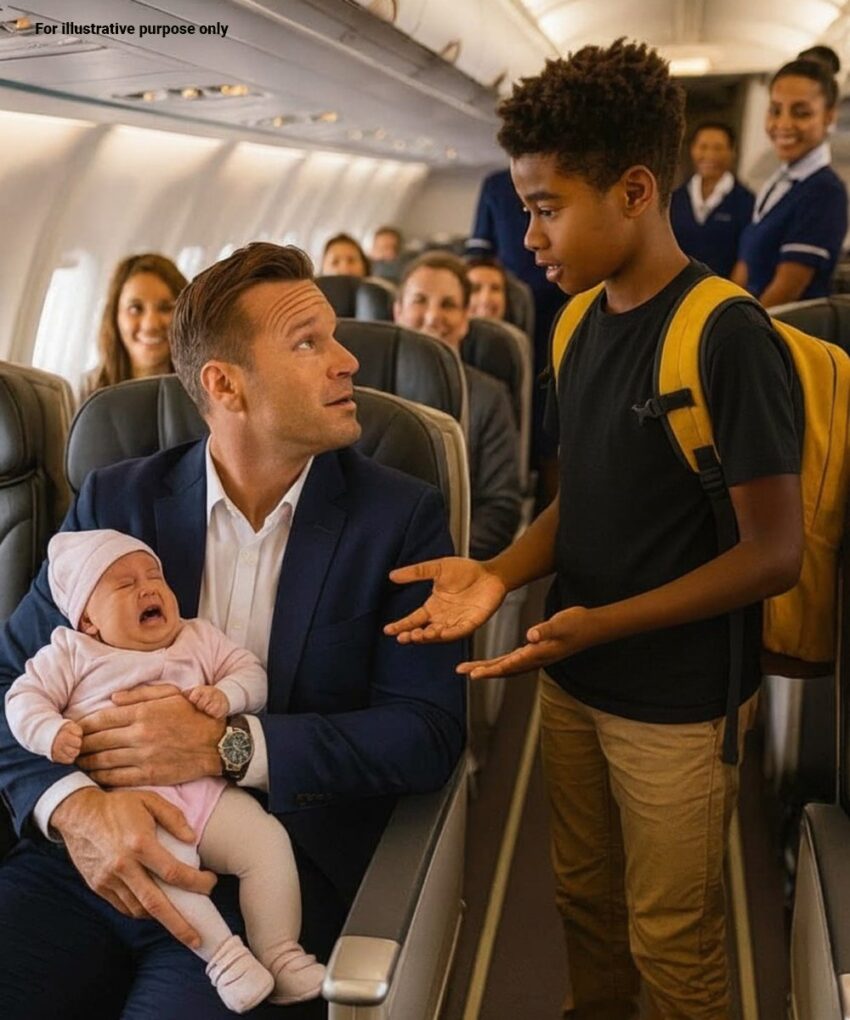 As the flight continued, Mason took the seat beside him, holding Nora when needed, offering advice from experience, and sharing small stories about his own family. He spoke warmly about his mother, who was a nurse, and how she had taught him to care for babies with patience and gentleness. His words carried the tone of someone who had grown up understanding responsibility far earlier than most.