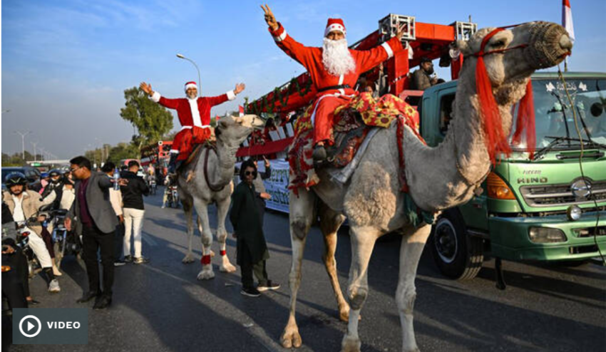 ISLAMABAD: Hundreds of Pakistani Christians marched through Islamabad in a Christmas rally on Sunday, with men dressed as Santa Claus riding camels and waving at crowds as they chanted greetings ahead of the holiday.