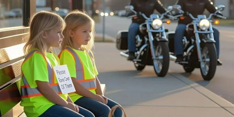 The world can change in an instant. For Thomas and me, that instant came on a routine Saturday morning. We were on his motorcycle, the wind in our faces, when we spotted two tiny figures in fluorescent yellow vests at a bus stop. As we drew closer, we saw they were two little blond girls, sitting in a silence that felt far too heavy for their age. A blue balloon, tied to the bench, bobbed cheerfully, but their faces told a different story—one of fear and abandonment. We knew we couldn’t just ride past.