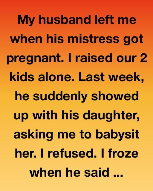 My husband left me eight years ago when his mistress got pregnant, leaving me to raise our two kids alone.