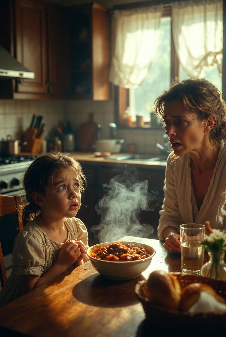 She looked at the bowl. Then, with a shaking hand, she picked up the spoon. She took a bite. Then another. Then she began to shovel the food into her mouth with a frantic, animalistic desperation. She wasn’t chewing; she was inhaling. Sauce dripped down her chin. She was crying while she ate, soft, silent sobs shaking her tiny frame.