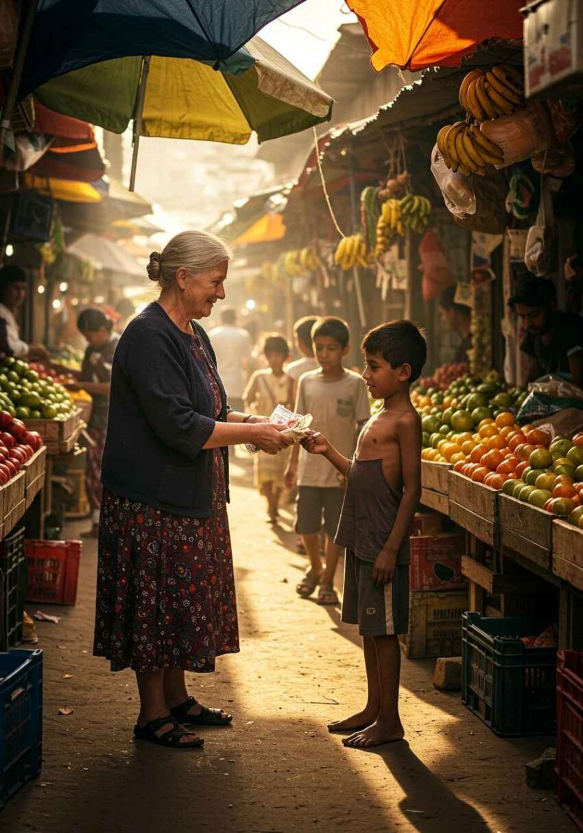 A nearby vendor noticed their exchange. “That’s Kofi,” he explained. “No parents. Sleeps behind the temple. Works when he can.” Margaret was stunned. “Works? At his age?” The vendor shrugged. “Better than begging. He’s a good boy.”