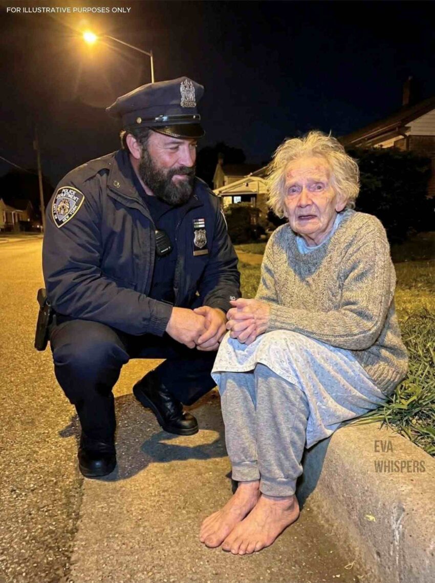 There, illuminated by the weak glow of the lamp, stood an 88-year-old woman in nothing but a thin cotton nightgown. Her hair was wild like she had been sleeping moments earlier. Her bare feet were pink from the cold pavement. And her eyes—wide, terrified, darting around like she was searching for a world she no longer recognized.