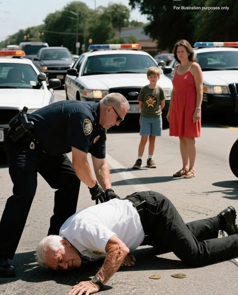 The officer made my 72-year-old husband lie face-down on scorching asphalt as the sun beat down with 97-degree heat, his arthritic knees grinding against pavement hot enough to blister skin. Four squad cars boxed him in, lights flashing, while passing motorists slowed to stare at “the dangerous biker” who was nothing more than a gentle veteran heading to a VA appointment. Harold—my Harold, a Bronze Star recipient who had survived two tours in Vietnam—lay motionless as the young cop pressed a boot near his head and sneered, “Stay down, old man.” His only crime? A supposedly “too-loud” exhaust pipe that had passed inspection just two weeks earlier. By the time they allowed him up, his face was burned, his hands shaking, and the dignity he’d guarded his entire life was cracking at the edges.