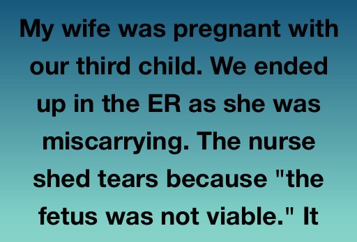 My wife was pregnant with our third child. We ended up in the ER as she was miscarrying. The nurse shed tears because “the fetus was not viable.” It was horrible. One of the first times I felt completely helpless. A little later, we found out that the miscarriage was actually misdiagnosed.