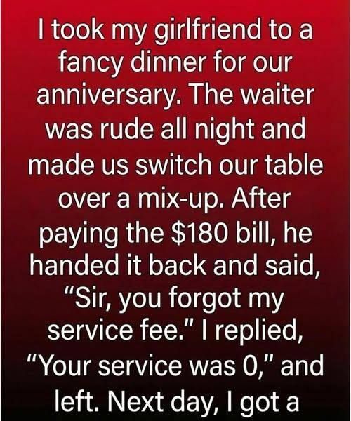 It reminded me that dignity doesn’t require confrontation, only honesty. That respect isn’t demanded through volume or anger, but through clear boundaries. And that once respect is lost, it costs far more than any bill ever could.