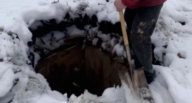 And that’s when I saw it—black plastic, half-buried in the frozen dirt.