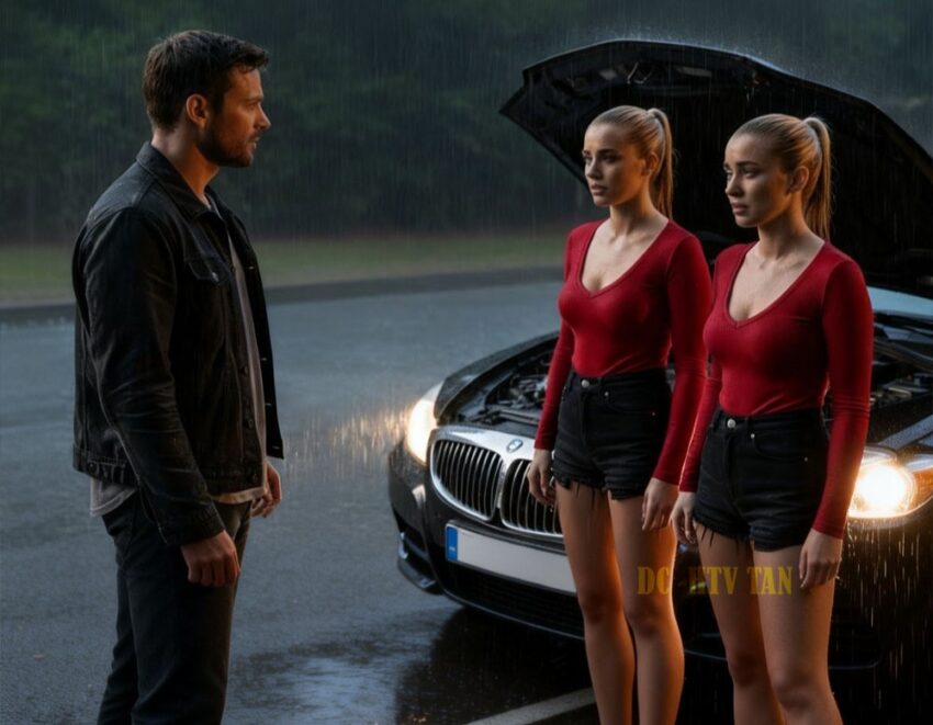 The storm hit hard. rain hammering his windshield like bullets. Lightning cracking the sky wide open. He just wanted to see Alice, hold her, remind himself why he was killing himself day after day. Then he saw them. Twin girls standing in the rain beside a car that cost more than he’d make in 5 years, stranded, scared, waving for help.