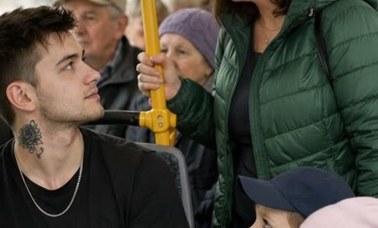 There were no empty seats. The woman looked around and immediately fixed her gaze on the young man. She approached him and said loudly, not hiding her irritation: