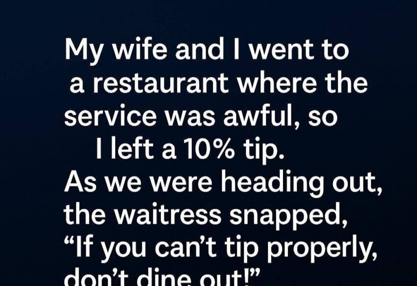 Some dinners are unforgettable—not because of the food, but because of the moment that shifts your whole perspective.My wife and I had stopped at a small restaurant after a long day, hoping for a quiet evening together. Instead, the service felt slow, distracted, and unusually tense. By the time we finished our meal, I left a modest 10% tip, thinking nothing more of it. But as we headed for the door, the waitress snapped, “If you can’t tip properly, don’t dine out!” Her words sliced through the air, leaving my wife furious and urging me to report her immediately.