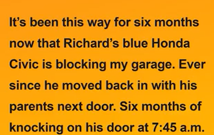 “Richard,” I said, crossing my arms. “We need to talk about the parking situation.”