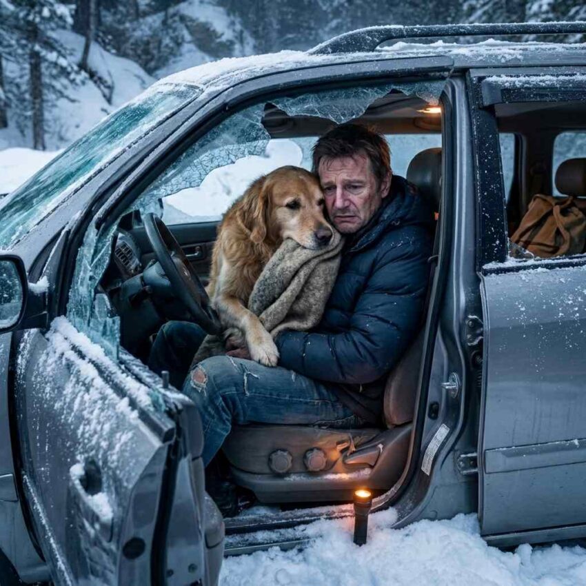 The windshield was gone, or at least mostly gone, and the wind tore through the cabin in long, howling bursts that carried bits of snow with it. His breath came out in short, visible clouds, each one thinner than the last. He tried to move, and that’s when the pain in his leg hit him properly, a blinding, nauseating surge that made him gasp. He looked down and saw the dashboard crushed inward, pinning his right leg at an angle that didn’t belong to any living thing.