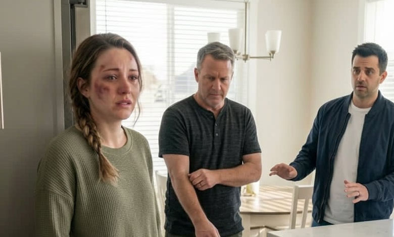 The cheerful warmth he carried disappeared the moment he saw me. I stood there with layers of makeup that couldn’t fully hide the dark marks along my cheek and jaw. My hands trembled so badly I nearly dropped the paper plates I was holding.