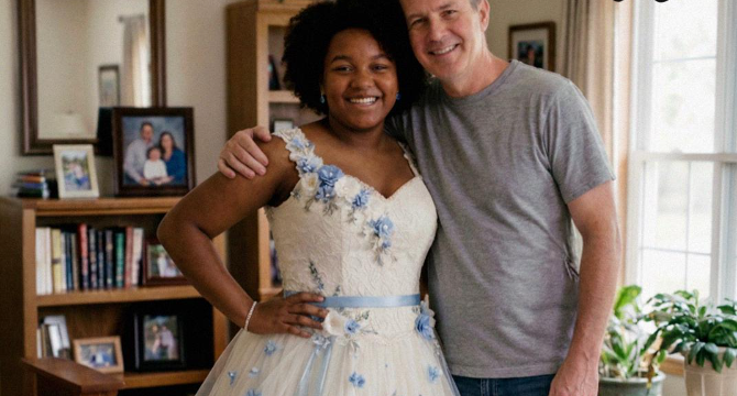 One night, while I rinsed plates and he sat at the table with a stack of bills, I said, “Dad, Lila’s cousin has a bunch of old dresses. I might borrow one.”